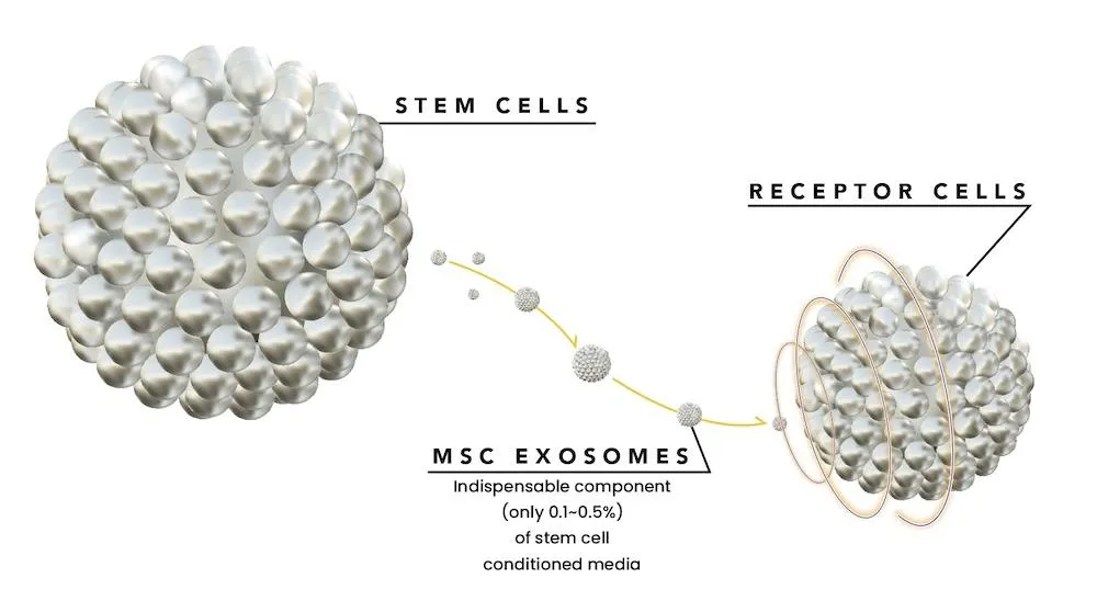 Exosomes are tiny, powerful vesicles released by stem cells. They possess a unique structure that allows them to carry large amounts of growth factors, cytokines, and other highly regenerative substances.